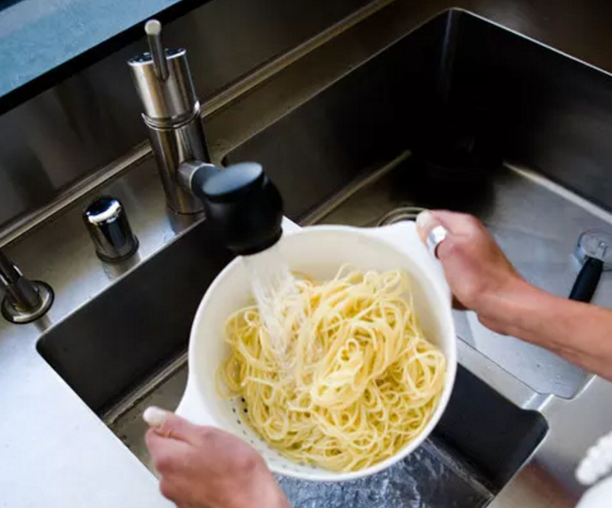 3. Myth: Rinsing pasta under cold water after cooking will prevent it from getting mushy.